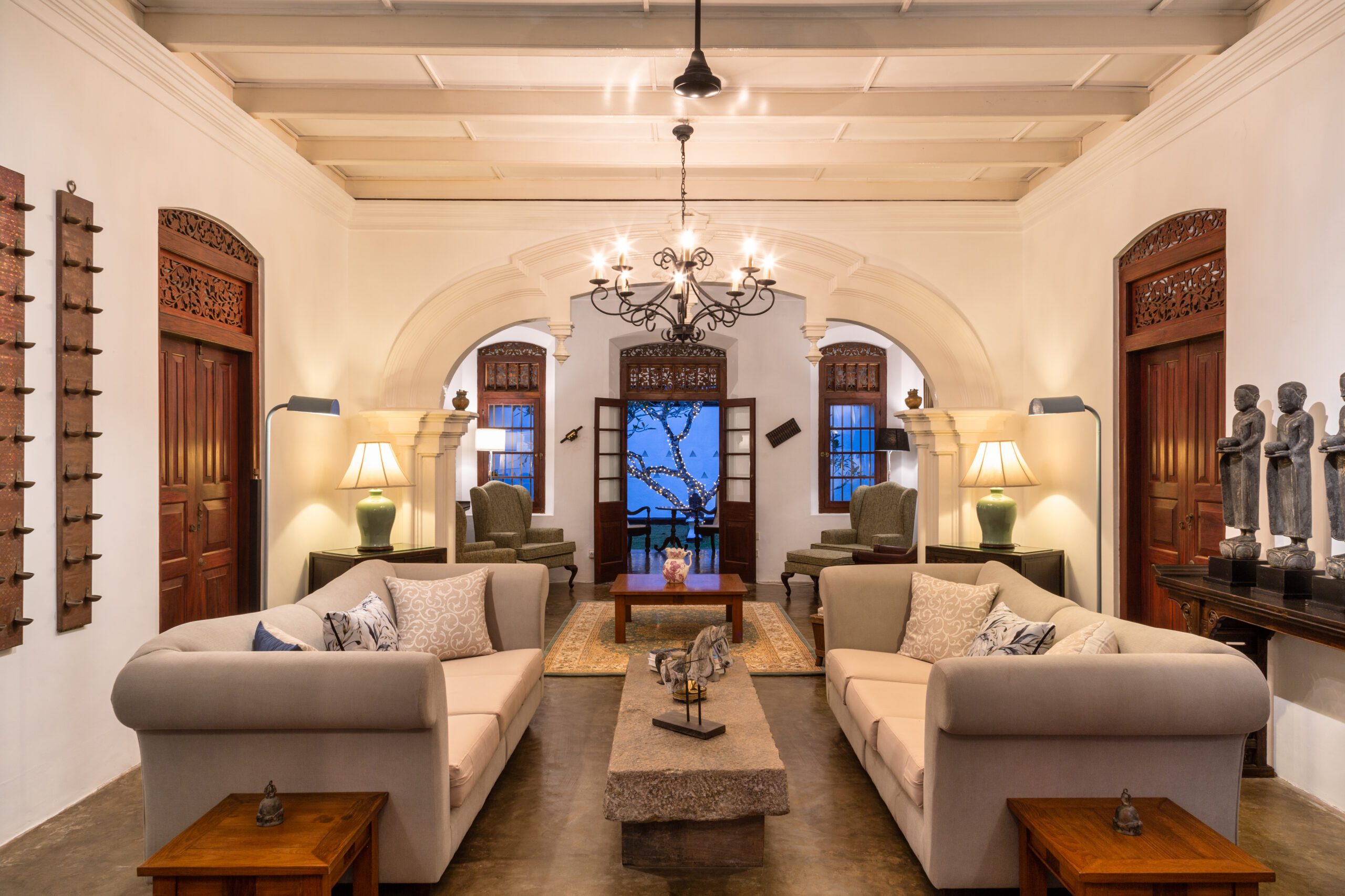 A stylish and luxurious hotel with stunning views around hills and water. This classical and comfortable five-bedroom property boasts quality, privacy and proximity to Sri Lanka’s most prestigious and picturesque golf course. The emphasis is on comfort, with spacious bedrooms and bathrooms, multiple private sitting and dining areas, all adorned with antique furniture and iconic art and ornaments. The hotel has its own spa, fitness and yoga spaces plus access to tennis courts and golf amenities Within reach of the ancient capital Kandy, riding and unspoilt countryside and nature.